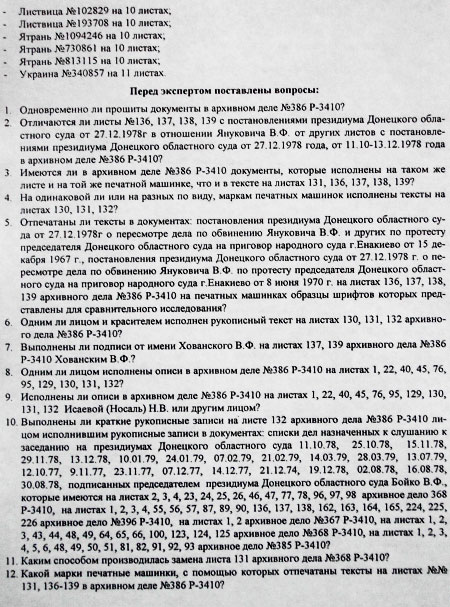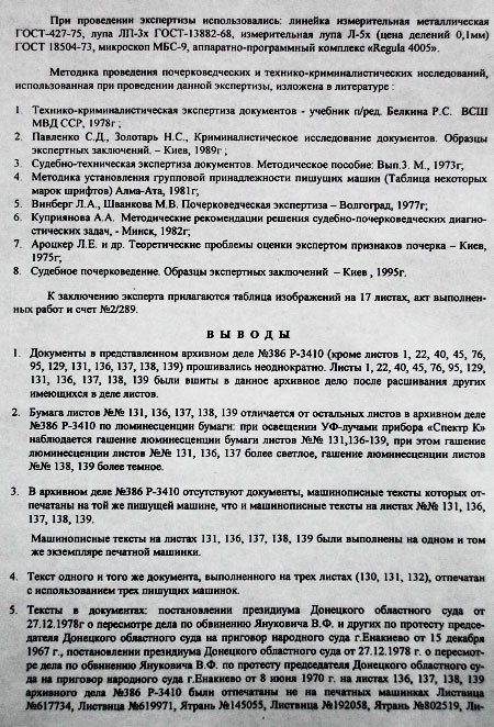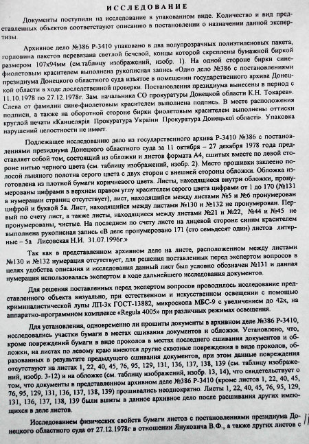 Перед вами – висновки двох експертиз стосовно сторінок про Януковича з архівної справи № 386 Р-3410.