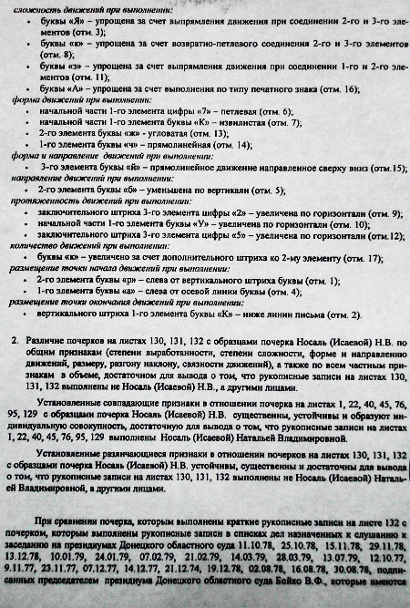 - опис в архівній справі на сторінках постанов про скасування вироків Януковичу виконана не Наталію Носаль, яка це робила на решті сторінок, а іншою особою,