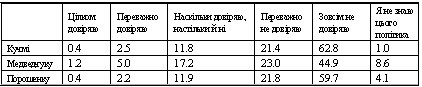 Ось дані загальноукраїнського опитування дорослого населення України, проведеного Фондом "Демократичні ініціативи" та Київським міжнародним інститутом соціології 18-21 вересня 2005 року.