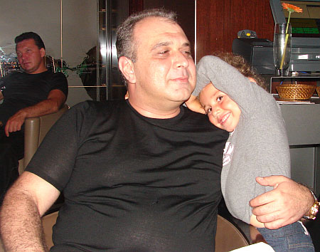 | Жванія лоскоче дочку Софію. Фойє готелю "Мерідьєн" |