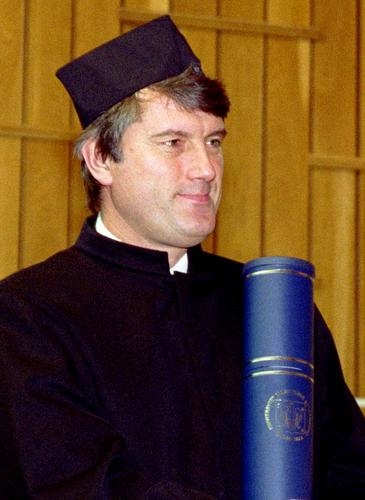 Не минула почесна доля і Віктора Ющенка. Третій президент України - почесний доктор Національного університету "Києво-Могилянська академія" та Острозької академії.