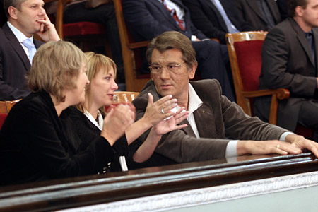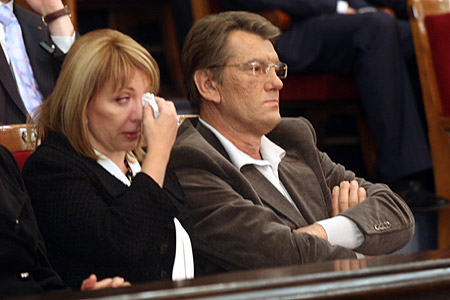 Холод ненатопленої зали відчувався і у доволі стриманих стосунках між головним подружжям України. Перед тим, як згасло світло, Катерина Ющенко погладила чоловіка по спині, але він ніяк на це не прореагував. Так само Віктор Ющенко навіть не робив спроб заспокоїти дружину, яка проплакала весь фільм.
