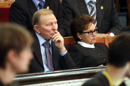 Але ці гості з'явилися перед публікою за кілька секунд до початку фільму. За їх відсутності в центрі уваги перебував колишній президент Кучма.