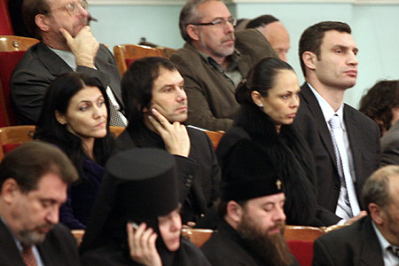 Найцікавіше почалося, коли до зали зайшли VIP-гості: Ющенко в супроводі дружини, а Янукович – Мороза. Чинний президент зайняв місце біля режисера фільму Сергія Буковського. Ющенко так і не підійшов привітатися з Кучмою.