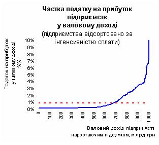 Проте мінімізують прибуток не тільки малі фірми. Тільки третина економіки є справним платником податку на прибуток (в цій групі переважають державні підприємства, або підприємства з іноземними інвестиціями). Більшість підприємств показують або збитки або мінімальні прибутки. І, відповідно нічого не платять до бюджету, чи платять мізерні суми – 1% їхніх валових доходів.