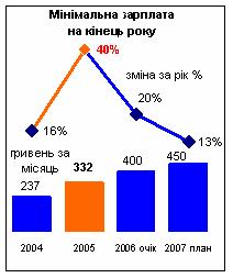 Натомість на 50 гривень планується збільшити всю мінімальну зарплату, і лише в кінці 2007 року. Оскільки на мінімальну зарплату інколи приходиться утримувати не одну особу, а ще і членів сім’ї, то цього явно недостатньо навіть для компенсації майбутніх комунальних витрат.