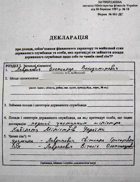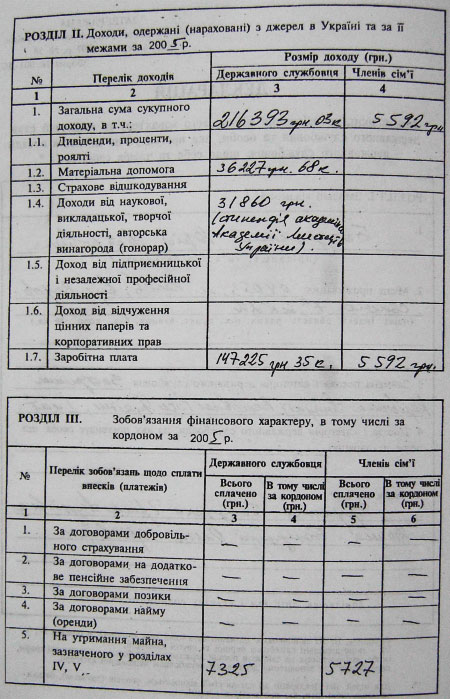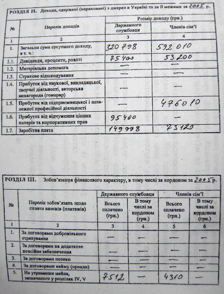 Олександр Лаврінович отримав у 2005 році більше 320 тисяч прибутку, з яких 149 тисяч – зарплата, 95 тисяч – прибутки від відчуження цінних паперів, 75 тисяч – дивіденди, проценти, роялті.