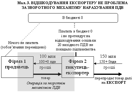 А за механізмом зворотної передачі (мал. 3) експортер одразу залишить у себе ті EUR20 млн., що підлягають відшкодуванню (він же коли купував товар платив не EUR120 млн., а EUR100 млн.). І відповідно додаткової операції відшкодування як такої вже не потрібно.