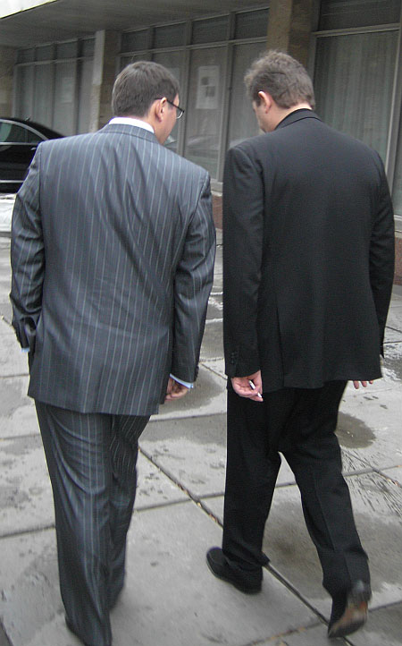 Луценко прибув на з'їзд бадьорою, навіть дещо рейдерською ходою в супроводі Тараса Стецьківа. Вони посіли місця в першому ряді, а сусідом міністра виявився Євген Червоненко. Хоча останнім часом у них конфлікт через запорізьку міліцію, Луценко і Червоненко розмовляли дружнім тоном і змагалися у взаємних підколках.