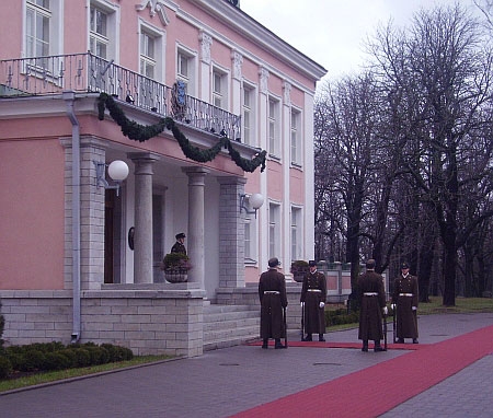Свій візит Ющенко розпочав у скандально відомому місці – президентському палаці в Кадріорзі. Близько року тому він опинився у центрі всесвітньої уваги завдяки... дебошу, влаштованому онуками колишнього естонського президента Арнольда Рюйтеля в цій резиденції.