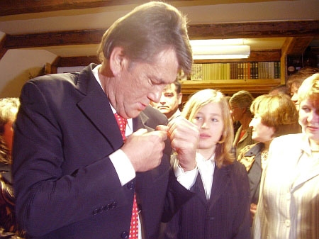 Кульмінацією ж зустрічі стало фотографування Ющенка з дітьми. А після того, як один хлопчик прочитав президенту вірш українською мовою, Віктор Андрійович вирішив поговорити з ним "як з чоловіком".