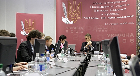 Вранці він зустрівся з репортерами закордонних ЗМІ, вдень – з українськими журналістами. На 16 годину в Ющенка було призначено онлайн-інтерв'ю.