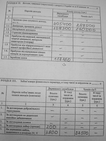 При цьому доходи членів сім'ї Радченка склали 288,5 тисяч гривень, а на сімейних рахунках значилося 2 мільйони 439 тисяч гривень.