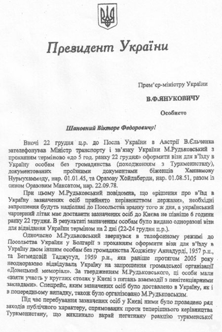 Як відомо, причиною для службового розслідування стосовно Рудьковського став лист від президента. Цей документ, на якому стоїть примітка "В.Ф.Януковичу особисто", потрапив у розпорядження "Української правди" від власних надійних джерел.
