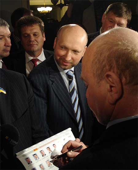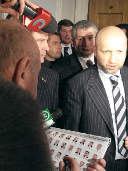Усі присутні бютівці зустріли цю заяву реготом, після чого Кисельов пішов, а для Турчинова принесли стілець, на якому він став позувати перед журналістами.