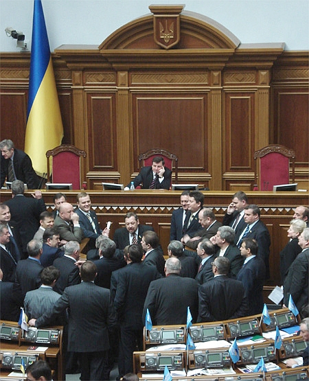Об 11.30 перший віце-спікер Адам Мартинюк зробив оголошення – у сесійній залі не працює система для голосування. Виявилося, 15 "воїнів світла" з БЮТ захопили електрощитові в будинку парламенту.