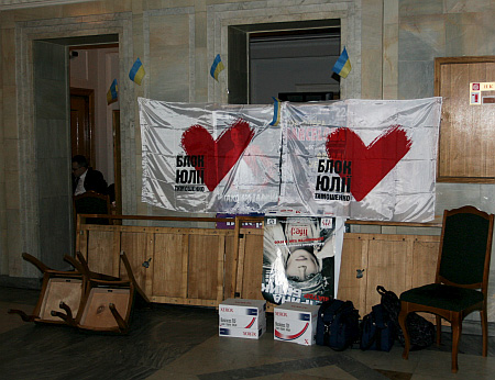 Побоюючись штурму, бютівці заблокували не тільки самі двері до кабінету з рубильником, але й підходи до цього фойє.