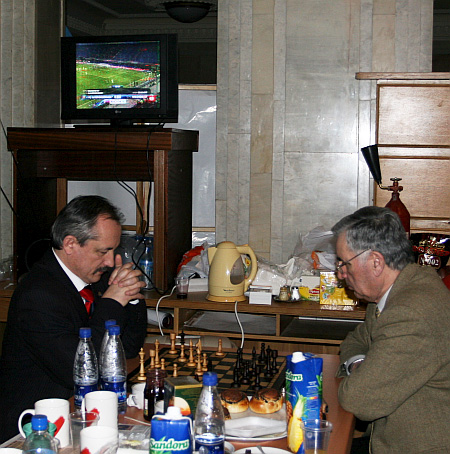 "У моє чергування дивилися футбол, Лігу чемпіонів. В нас є шахи, я приніс доміно з портретами політиків – Тимошенко, Порошенко, Симоненко...", - розповів бютівець Андрій Шевченко о пів на першу ночі. Він постраждав найбільше – у цей день Шевченко святкує третю річницю весілля, але вечір довелося провести не з дружиною, а з соратниками по партії.