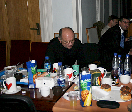 Протягом ночі в парламенті працює буфет, але бютівці, попереджені заступником Тимошенко Олександром Абдулліним про можливі теракти проти них з додаванням пургену, їдять харчі, принесені колегами – сир і ковбасу.