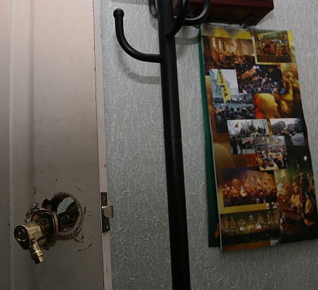 У квартирі валялися плакати з символікою "Народної самооборони" і футболки "Пори". "Зніміть виламаний замок!", - керував журналістами Годунков.