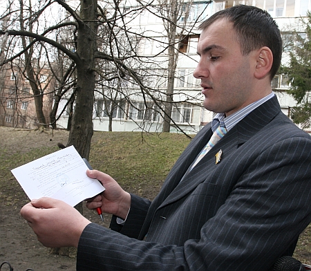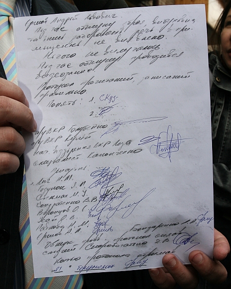 | Годунков демонструє протокол, в якому написано, що те, що шукали, не знайшли |