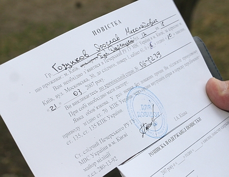 Натомість вони передали Годункову повістку, в якій було сказано з'явитися до райвідділу міліції у кримінальній справі. У якій саме – вони не повідомили, попросивши Годункова подзвонити за зазначеними у повістці телефонами.
