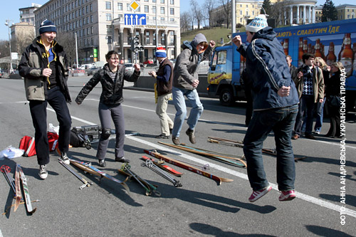 У неділю на Хрещатику під пильним оком міліції відбувся Кубок Лукашенка. Тепла, сонячна погода не завадила організаторам та учасником заходу. З гучномовців лунала музика радянських часів, учасники лижного забігу з честю милили лижі на асфальті на честь бацька Лукашенка.