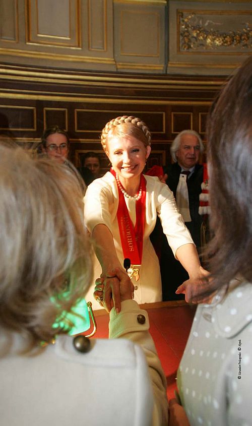 Зібрання в бібліотеці Сорбони різко дисонувало з врученням Тимошенко американської премії кілька тижнів тому. Публіку, що зібралася в цьому камерному приміщенні, розважали чотири музики, які виконували українські пісні. Трохи пізніше їх замінили люди в мантіях, які і мали вручити нагороду Тимошенко, серед яких і Патрік Вайсман – засновник і редактор журналу.