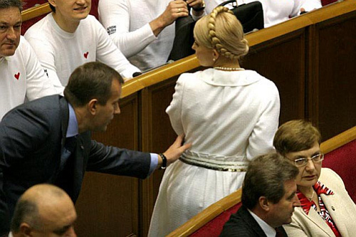 | Клюєв спілкується з Тимошенко мовою жестів |