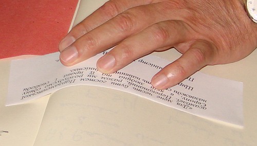 Розкривши золоту книгу, Янукович несподівано звідкись дістав вузенький папірчик, розвернув його і поклав зверху на сторінку. Виявилося, що це була маленька шпаргалка, підготовлена добрими людьми. Янукович старанно, слово в слово, переписав до книги почесних гостей все, що йому було надруковано: