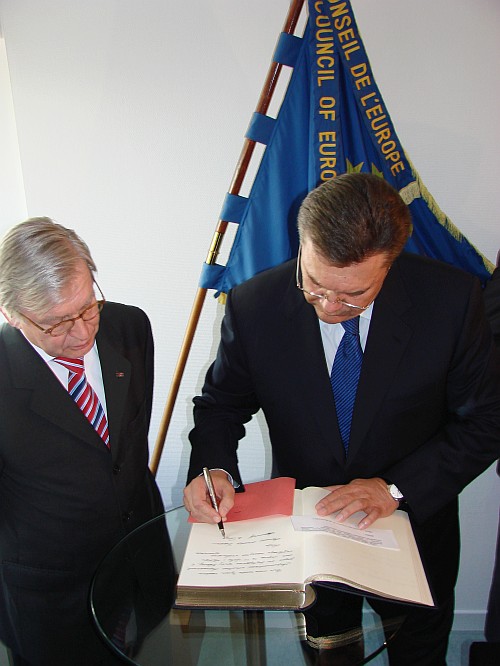 І справді, коли кортеж прем’єра зупинився перед центральним входом, тут уже стояло все керівництво Ради Європи. Президент Парламентської асамблеї Рене ван дер Лінден представив своїм колегам Януковича та покликав усередину.