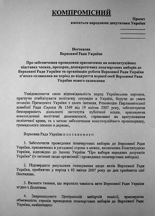 Проект постанови, яка може вивести Україну з політичної кризи