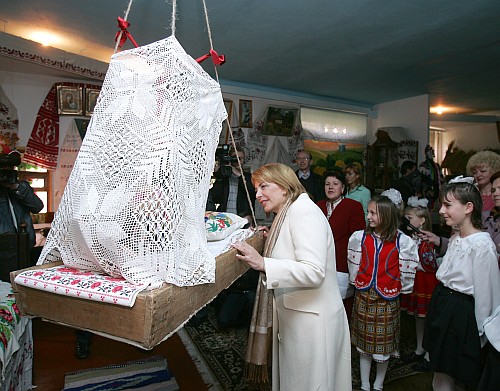 Катерина Ющенко оглянула приміщення закладу, поспілкувалася з дітьми та педагогами. Зокрема, пані Катерина побувала в етнографічному музеї, створеному силами вихованців та вихователів школи-інтернату, а також відвідала виставковий зал, де представлено роботи дітей, які перебувають тут.