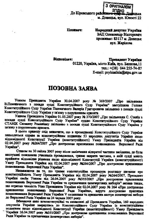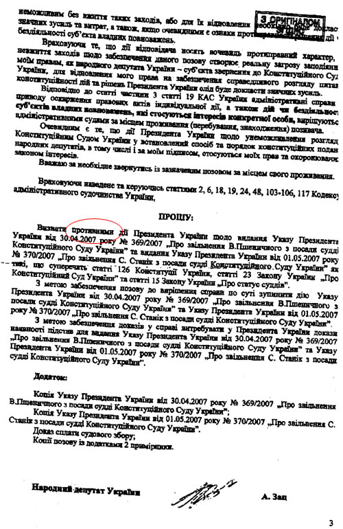 У розпорядження "Української правди" потрапив текст позову Заца, який просить визнати дії Ющенка "противними".