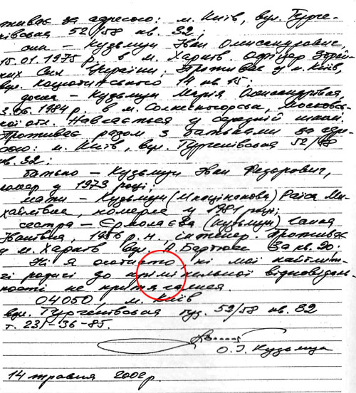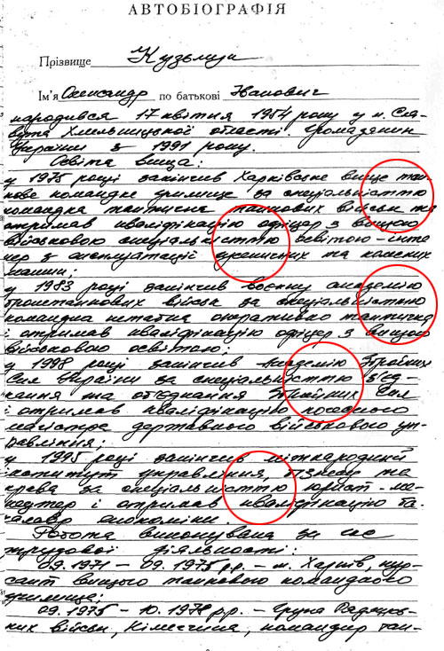 Привертає увагу те, що автобіографія Кузьмука та його декларація написані різними почерками. Де водив ручкою по паперу сам генерал, а де - ні, встановити складно.