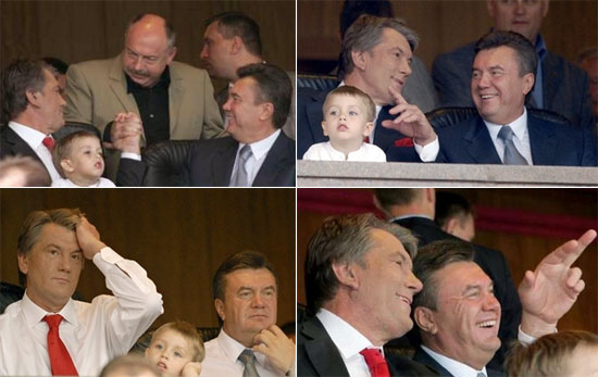 | У неділю на футболі Ющенко демонстрував лояльність не тільки до Януковича, але й до Піскуна. Фото Reuters і Associated Press |