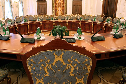 Перший пункт призначення для інформ-туристів – зал державних заходів з круглим столом і булавою під склом. Тут відбувається засідання Радбезу, з цього приміщення вийшов у світ "Універсал національної єдності".