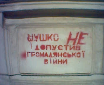 Ті ж самі слова якимсь дивним чином останніми днями оселилися й на парканах українських міст. Замість нецензурної лексики тепер на них можна побачити написи: "Цушко – герой!".