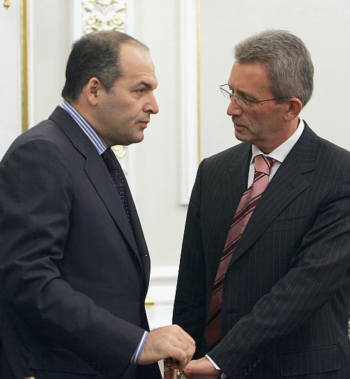 | Пинчук и руководитель Укрсоцбанка Борис Тимонькин. Фото прес-службы президента |