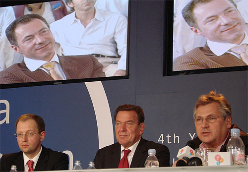 Після виступу Яценюка слово взяв німецький екс–канцлер Шредер, і майже відразу конференція пішла в хибне русло. Ялтинську трибуну він перетворив на майданчик агітації за своє бачення газових проблем між Росією та Європою: