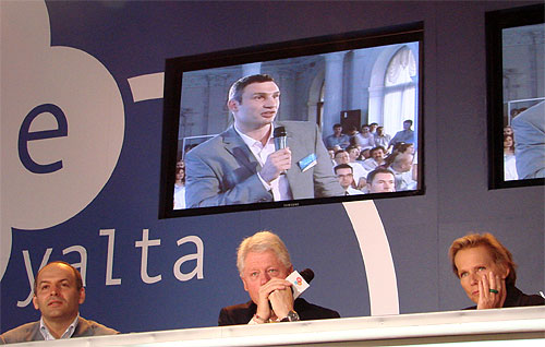 А внутрішній український конфлікт зник із контексту конференції разом з появою у залі рум'яного і довгоочікуваного гостя – Білла Клінтона.