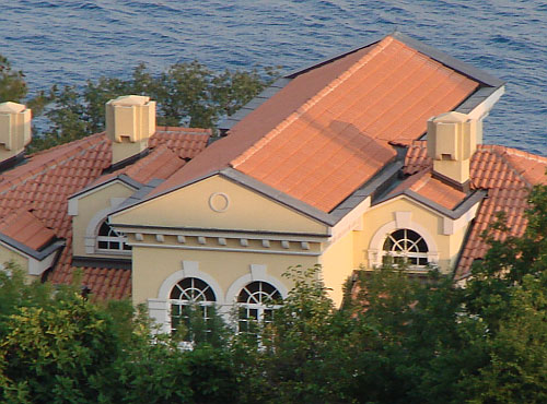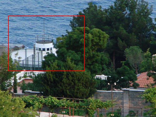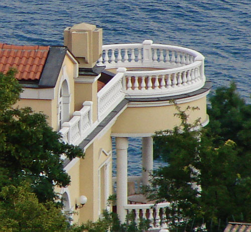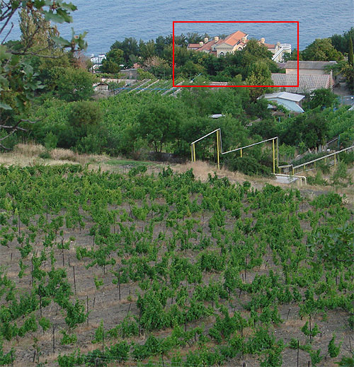 Справді, з указаної нею точки маєток добре проглядається – видно горищний поверх і лоджію. Прямо за віллою починається лазурове море.