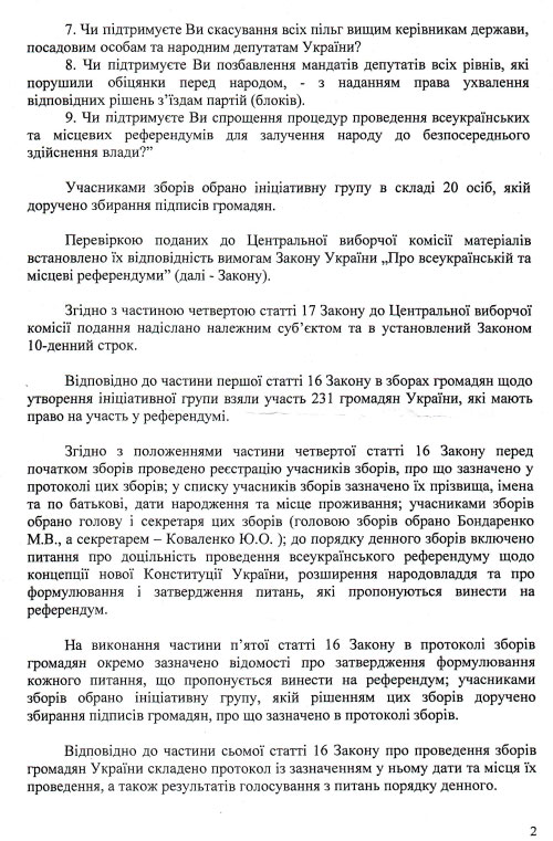Найцікавішою ж частиною документу, поданого Тимошенко до ЦВК, виявився перелік проблем, який буде винесено на всеукраїнський референдум.