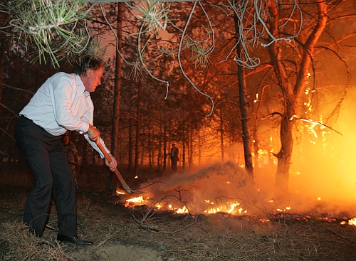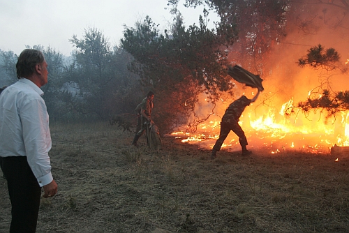У вівторок Віктор Ющенко поїхав на Херсонщину ознайомитися зі станом гасіння лісових пожеж. Там він пересів на літак, під крилом якого побачив, що роботи ще - не початий край.
