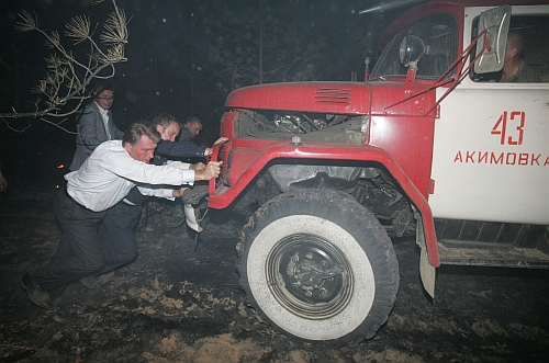 Як Ющенко і Шуфрич гасили пожежу і штовхали машину