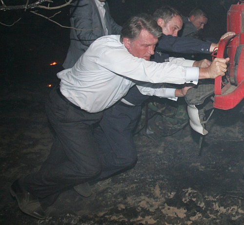 Якщо цього ранку Катерина Ющенко спитає свого чоловіка, де він був цілу ніч, той може спокійно відповісти: "Уявляєш, усю ніч із Шуфричем пожежу гасили". І пані Катерина йому повірить. Бо свідком того, як президент і міністр з надзвичайних ситуацій з лопатами у руках працювали вночі, стала вся країна.