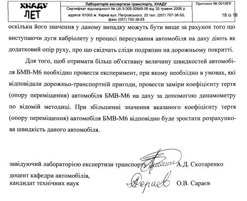 Крім того, при розрахунку деформації BMW M6 були вибрані неадекватні коефіцієнти тертя. Цікаво, що ці коефіцієнти при першій експертизі були вибрані згідно з довідником 19 сторіччя – 1893 року!