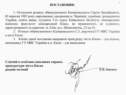 Зараз Калиновський оголошений у державний розшук, до російського МВС спрямовано матеріали для його розшуку на території СНД, а до Інтерполу – для міжнародного розшуку.