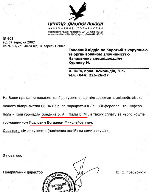 Спецслужба закидає Бондику використання чартерного літака для перельоту до Криму. Ці події сягають корінням у спроби Партії регіонів будь-якими методами зупинити дію указу Ющенка про розпуск парламенту.