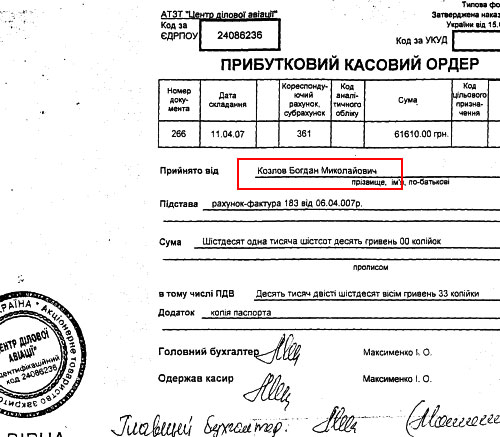 За перевіркою спецслужб, ці гроші за літак заплатив такий собі Козлов Богдан Михайлович.